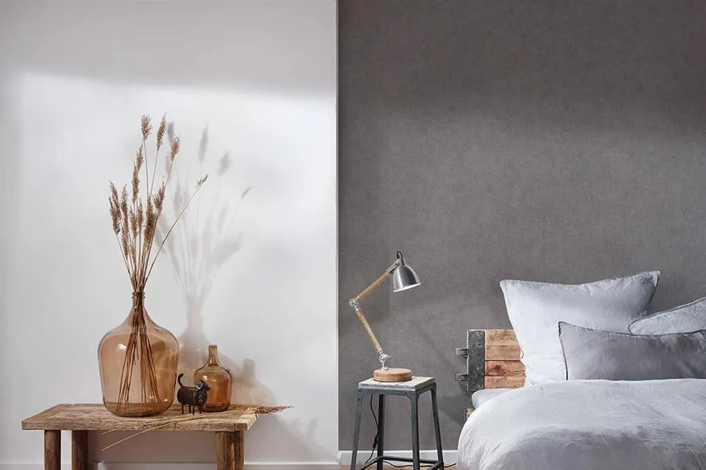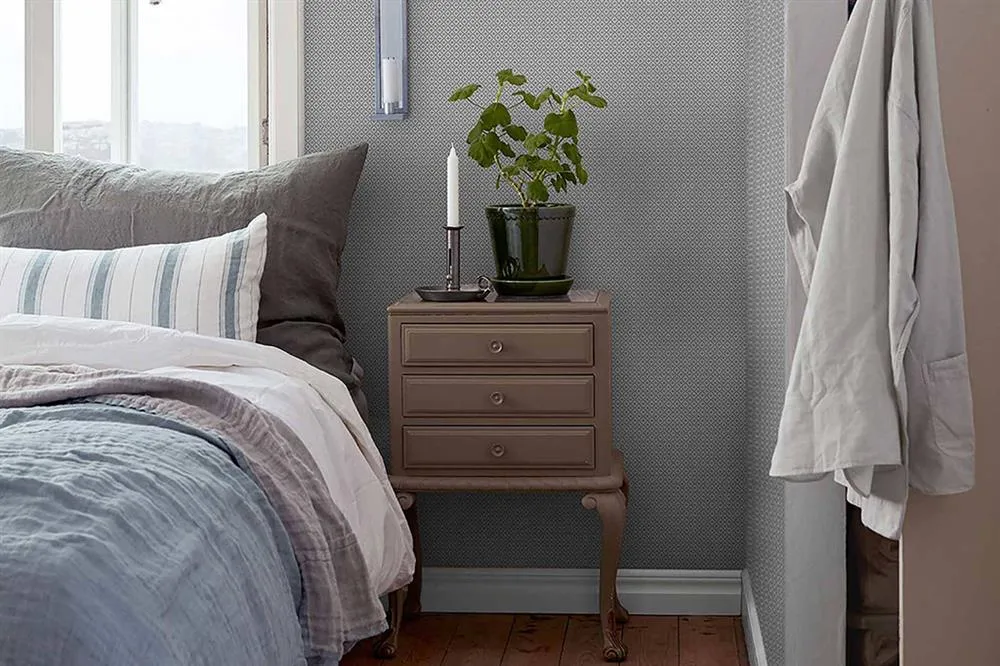 Sininen on rauhallinen väri, josta monet pitävät makuuhuoneessa. Tekstiilipintaa jäljittelevällä tapetilla on hieman ääntä vaimentava vaikutus ja se tuo pehmeän kodikkaan tunnelman. Harmaa on myös hyvä väri makuuhuoneeseen ja sitä on saatavana sekä lämpiminä että viileinä sävyinä. Harmaa makuuhuoneen tapetti on fiksu valinta, jos haluat sisustaa usein uudelleen ja käyttää eri värisiä tekstiilejä esimerkiksi vuodenajan mukaan.