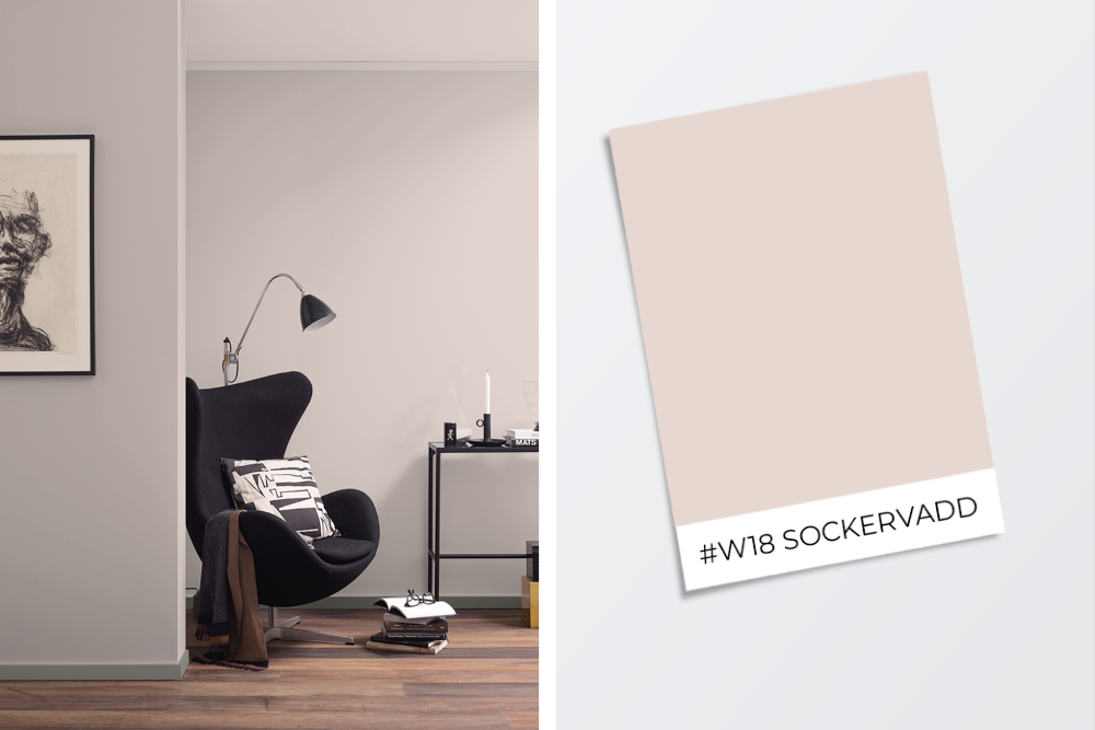 Färgen sockervadd är en svagt rosa färg som skapar lugn och frid. Då den är väldigt svagt rosa blir det precis lagom att ha kulören som både tak- och väggfärg. Med denna svagt varma, mysiga kulör kan du enkelt skapa ett välkomnande intryck och en lättsam, trevlig stämning. Måla med sockervadd i tak och vägg för att få en rosa touch på rummet som förgyller hela stämningen!